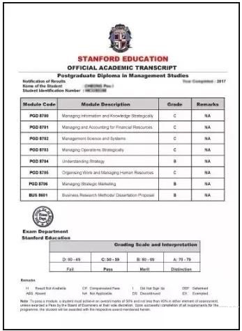 英国新白金汉大学MBA中期成绩单