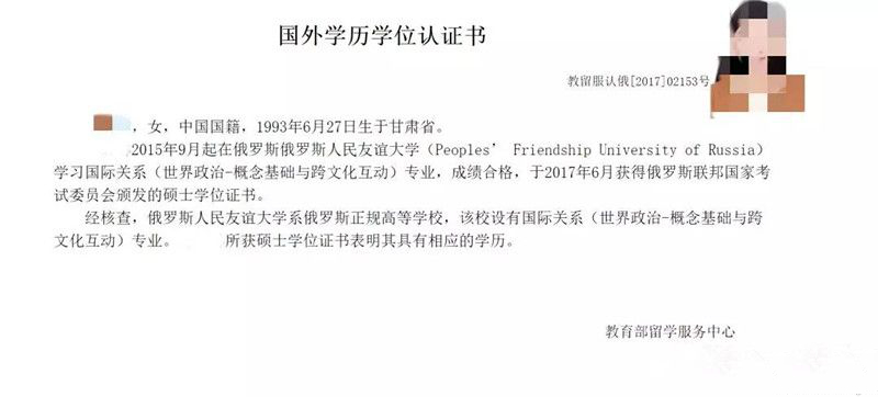 中国国家教育部官方机构“教育涉外监管网”公布承认的俄罗斯大学