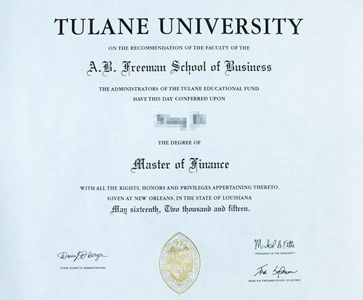 美国杜兰大学金融硕士(Master of Finance)学位证书