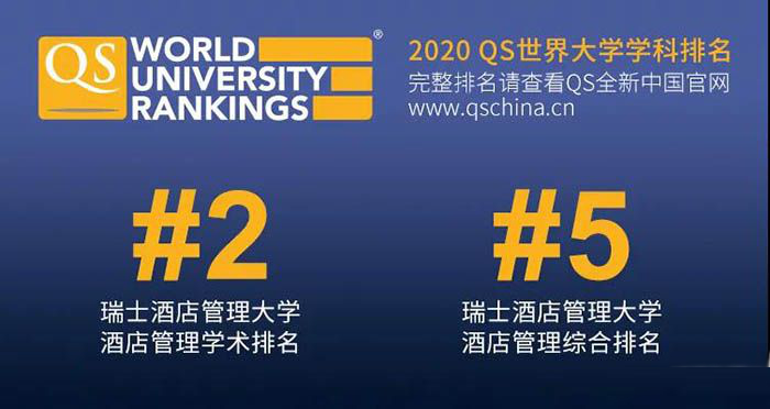 2020QS世界大学学科排名,瑞士酒店管理大学学术排名第二,酒店管理排名第五。