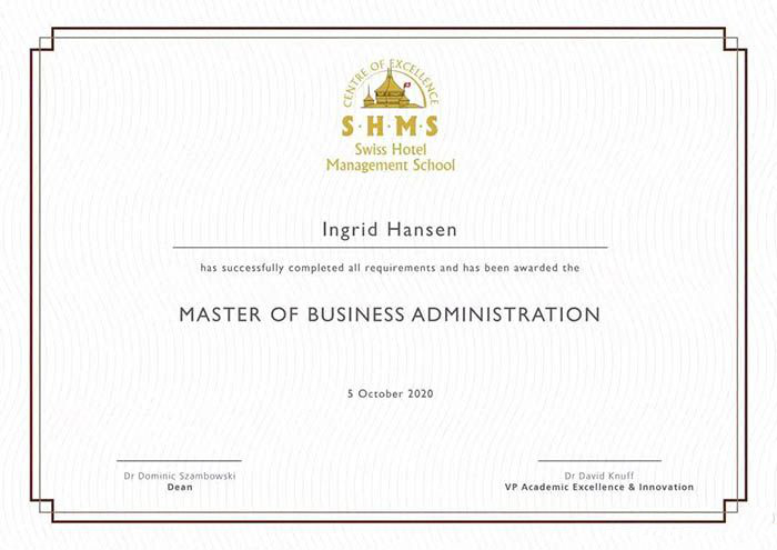 瑞士酒店管理大学工商管理硕士(MBA)学位证书