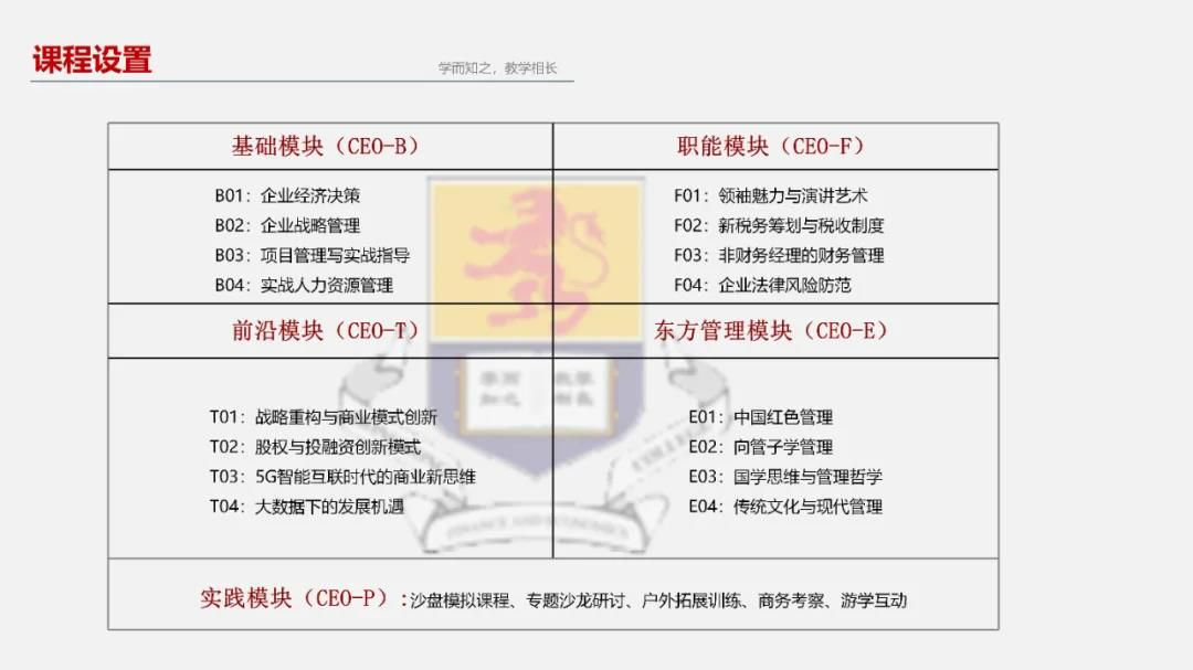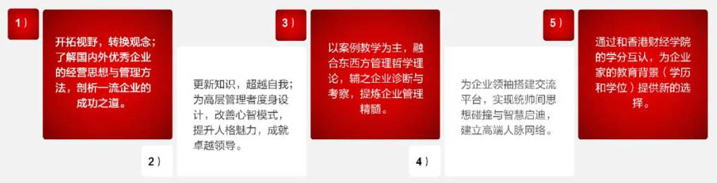 工商管理硕士MBA研究生班,依托香港财经学院的成功教学理念 和学术支持,以学员需求为中心,精选12~16门 MBA 、EMBA核心课程,设计为基础模块、职能 模块、前沿模块、东方管理模块、实践模块五大 核心版块,兼具知识体系的科学性、系统性、国 际性及前瞻性。